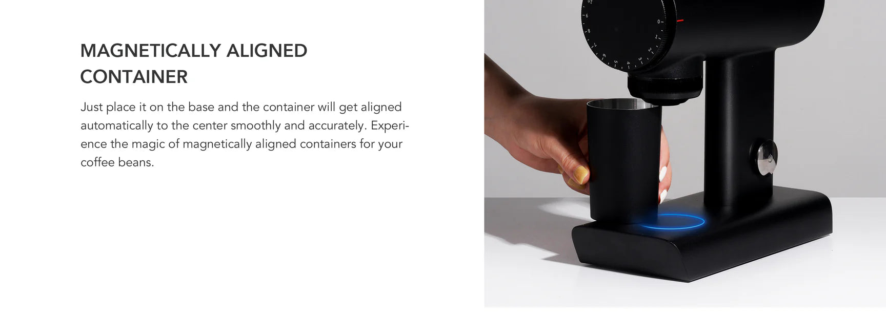 Stufenlos einstellbare On-Demand-Mühle mit Grind-by-Weight-Technologie für präzise Mahlergebnisse – ideal für Cafés, Restaurants und Home-Baristas.